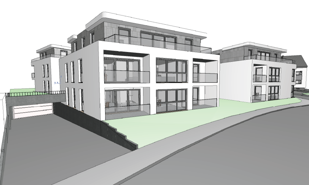 „Neubau von drei Mehrfamilienhäusern mit gemeinsamer Tiefgarage“