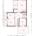 - Erdgeschoss: Flur, Abstellraum, Gäste-WC, Küche mit direktem Ausgang zur Dach-Terrasse (auf einer Garage), großzügiger Wohn- und Essbereich mit direktem Ausgang zum Balkon
