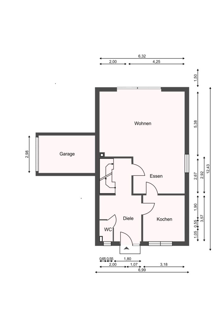 - Erdgeschoss: Diele, Gäste-WC, Wohnküche, großzügiger Wohn- und Essbereich,