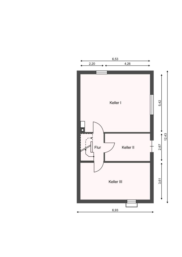 - Kellergeschoss: drei Kellerräume (einer mit direktem Zugang zum Gartenbereich)