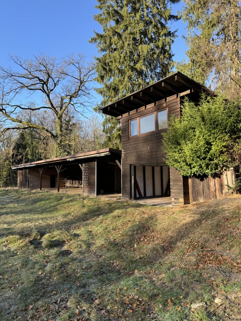 Ein Wohnhaus nebst Anbau und Remise bilden die Hofanlage auf dem Grundstück. Die Hofanlage ist von einer großzügigen Freifläche (u. a. ehemalige Reitplätze) umgeben. Hier befinden sich eine zweite Remise und zwei Teichanlagen (nicht immer wasserführend).