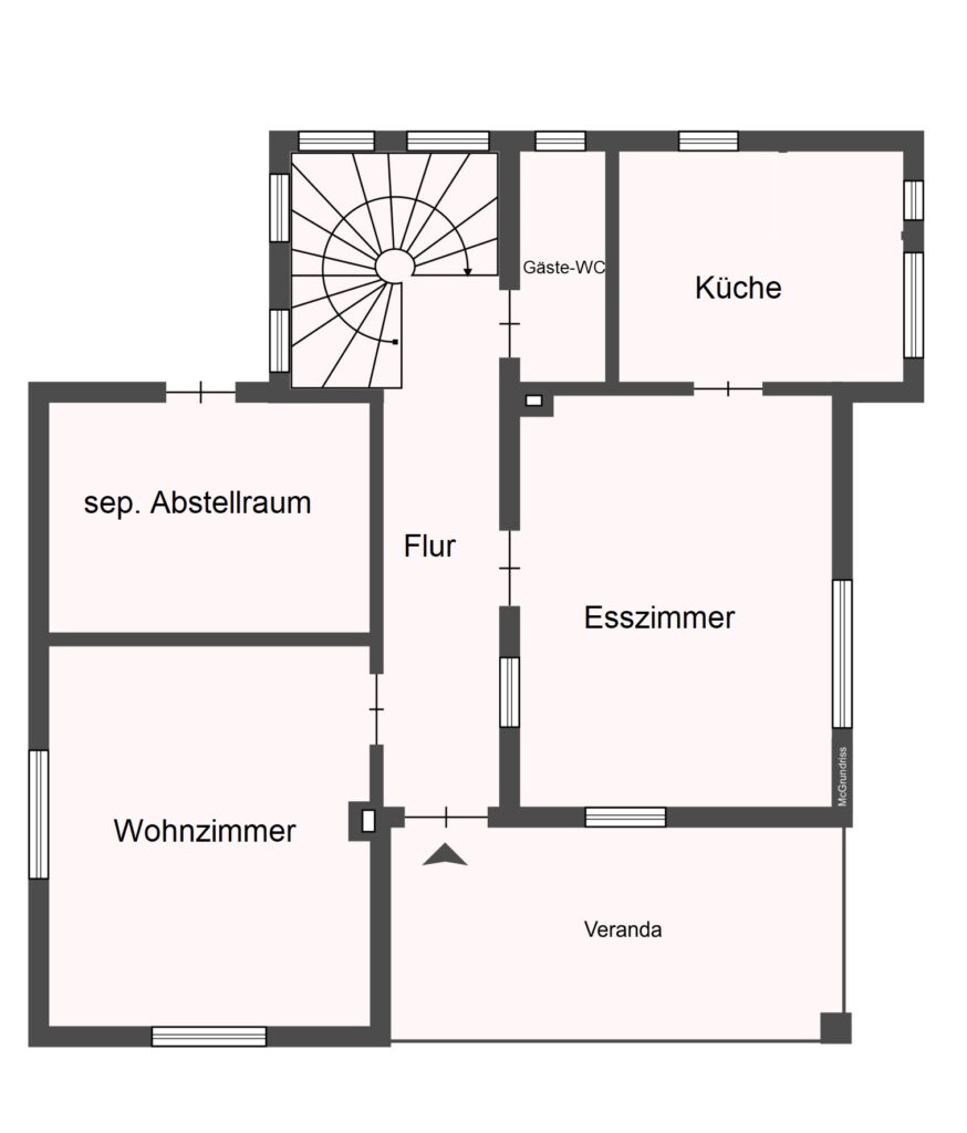 5 Zimmer zzgl. Küche, Diele, Badezimmer, Gäste-WC, sep. Abstellraum, Dachboden, Kellerflächen und Veranda