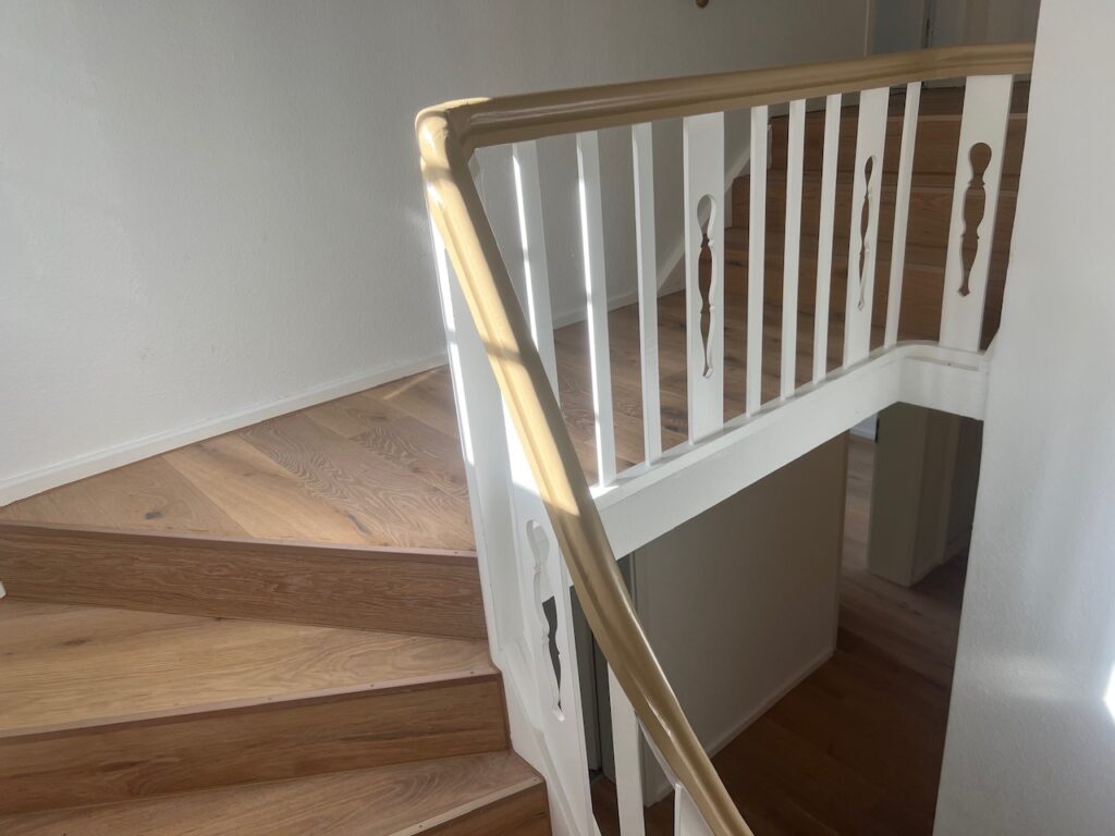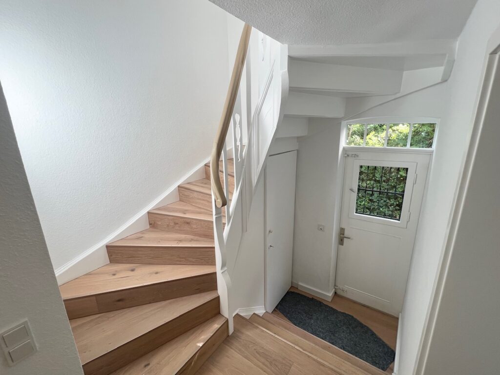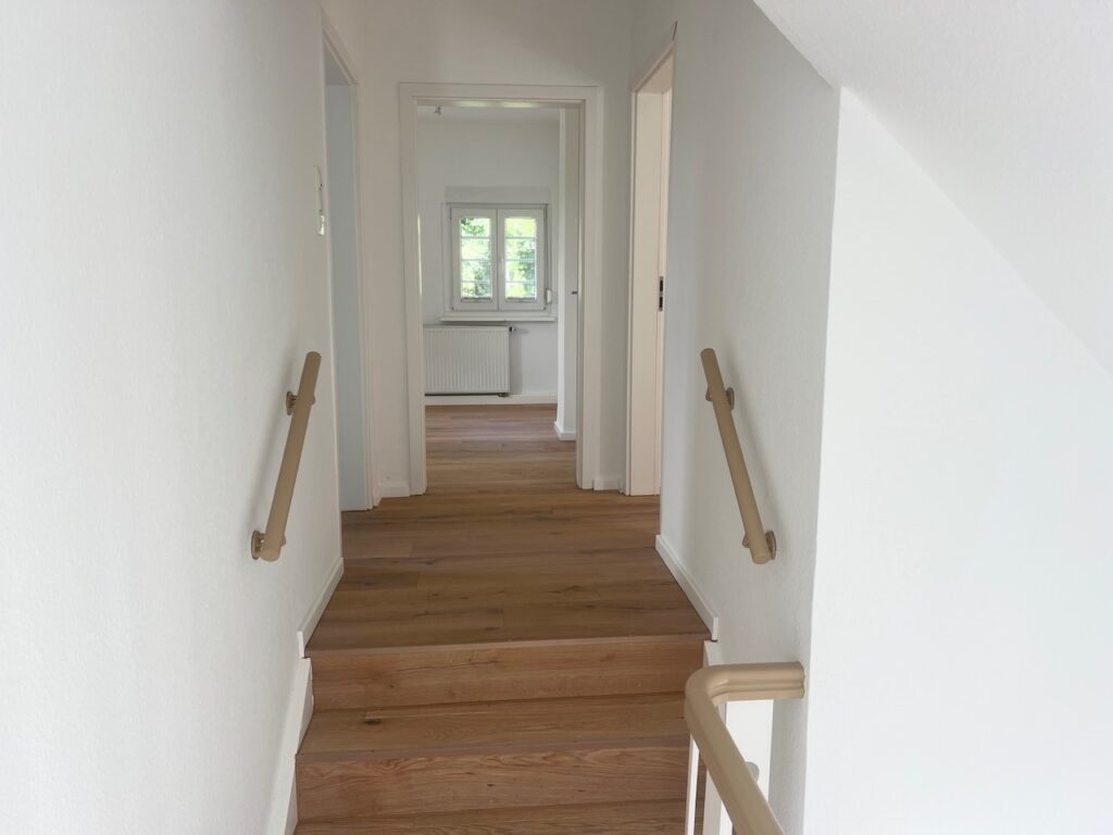 Über einen neubelegten Treppenaufgang gelangt der Bewohner in das Obergeschoss. Im Obergeschoss befinden sich die Schlafräume sowie das vollwertige Tageslichtbad und ein Durchgangszimmer, welches wunderbar als Ankleidezimmer genutzt werden kann.