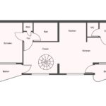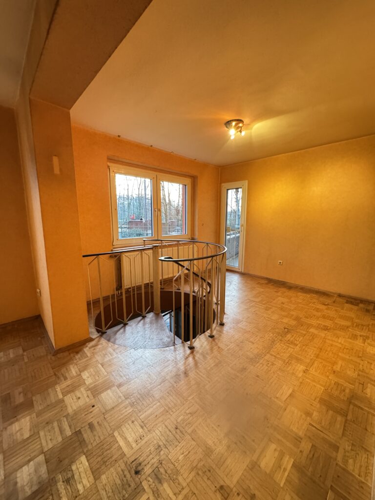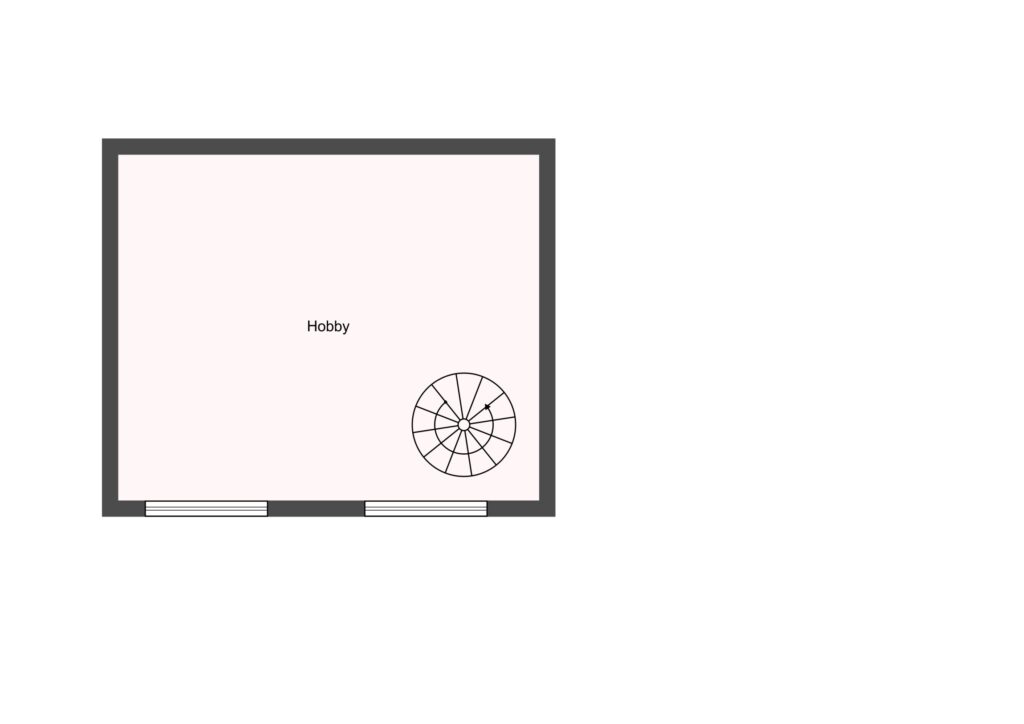 Über das Wohnzimmer gelang man durch eine Wendeltreppe in den Hobbyraum im Untergeschoss (ca. 30 m² Nutzfläche, beheizt mit zwei Fenstern).