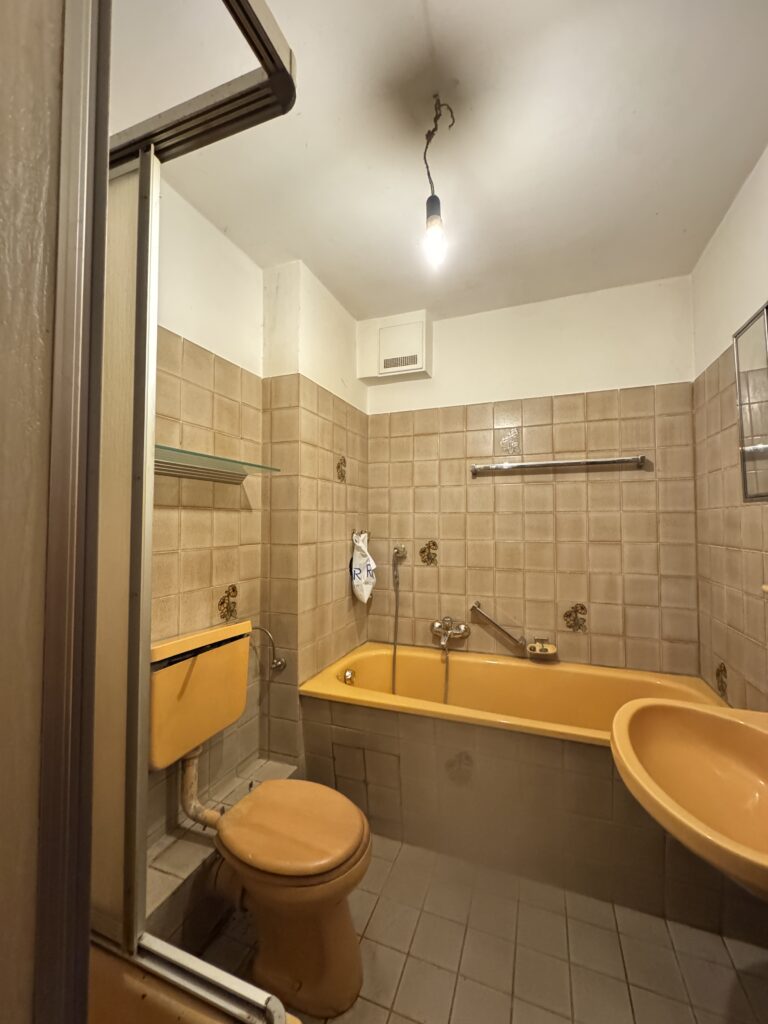 Die Wohnung befindet sich im Erdgeschoss eines gepflegten Mehrfamilienhauses (insgesamt 15 Wohneinheiten / Baujahr ca. 1983) und ist vollständig renovierungsbedürftig. Die Kosten für die Renovierung obliegen dem Erwerber.